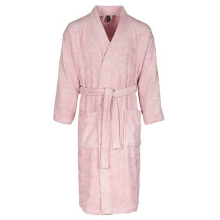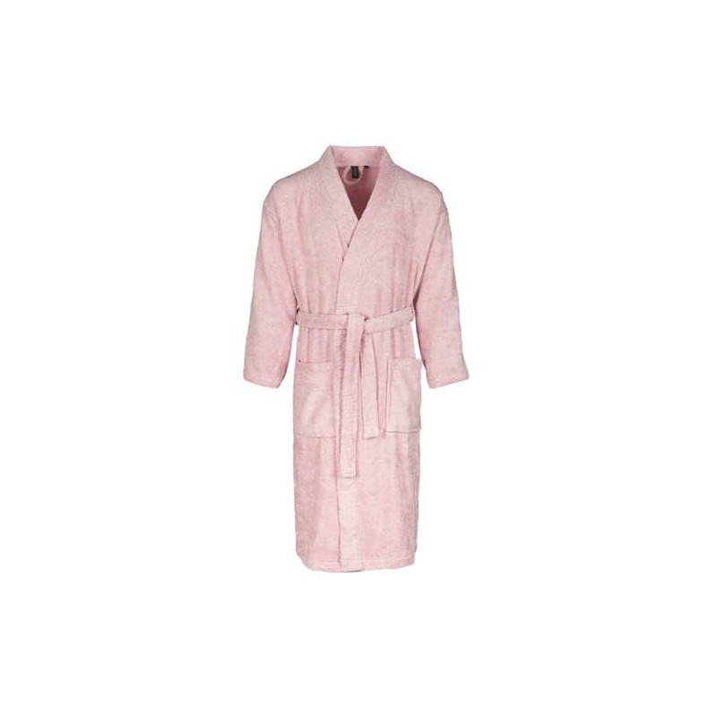 Forme kimono unisexe, 2 poches, ceinture sous passants. Accroche-patère.