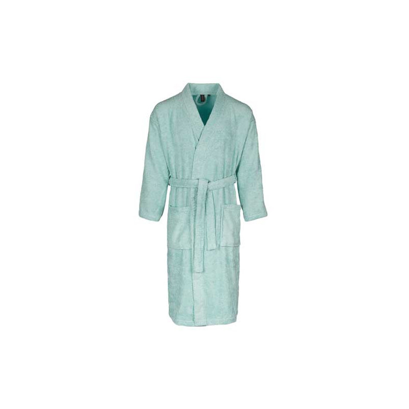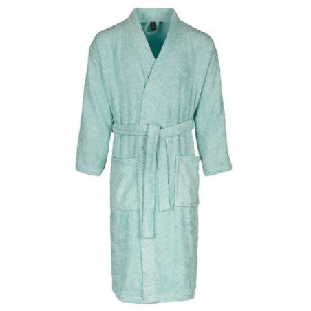 Forme kimono unisexe, 2 poches, ceinture sous passants. Accroche-patère.