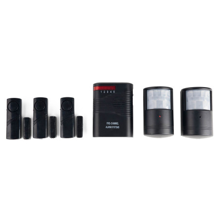 Sans fil, sans installation compliquée et sans programmation, ce système de surveillance se compose de : 2 détecteurs de mouvements (qui s’enclenchent dès qu’un sujet se présente à 5 m), 3 contacteurs de portes ou fenêtres (fixés par adhésifs) et 1 récepteur mobile que vous installez où bon vous semble ou emportez dans la pièce dans laquelle vous êtes. Dès qu’une présence est détectée, une sirène puissante de 85 ou 110 dB et un signal lumineux (indiquant quel élément a détecté l’intrusion) se déclenchent.