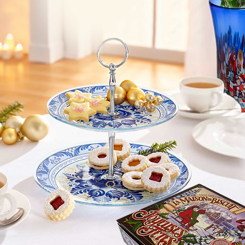 Présentez amuse-bouches et petits fours sur cet élégant serviteur rehaussé d’un décor bleu et or raffiné. À l’heure du thé, vous y disposerez macarons, chocolats et autres friandises pour le plus grand plaisir de vos convives.