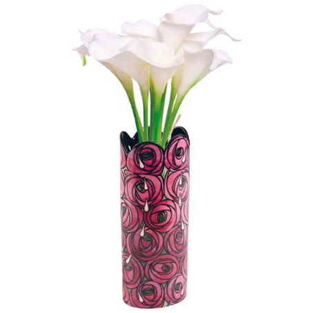 Ce superbe vase coloré est inspiré d’un motif cher à Charles Rennie Mackintosh, intitulé Roses et larmes. On y devine l’influence de sa femme, Margaret, par le côté doux et féminim. Il conviendra à vos bouquets préférés.