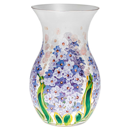 Violettes, lilas ou myosotis… Admirez comme elles sont minutieusement peintes, ces délicieuses fleurs pleines de vie et de fraîcheur. Elles donnent à ce vase un charme naturel, accentué par les feuilles vertes à leur base. Faites entrer le printemps dans votre intérieur !